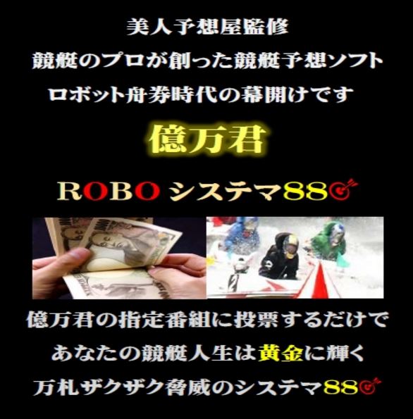 「億万君ROBOシステマ88」を手に入れれば、あなたの競艇人生が一変します!