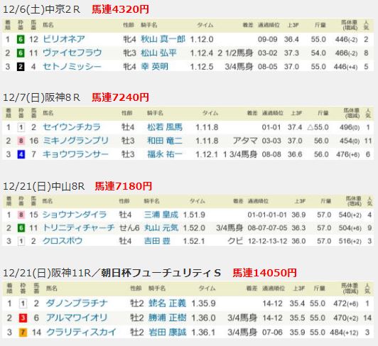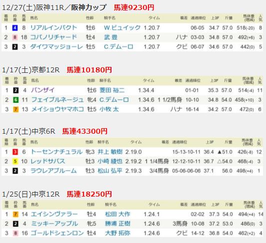もちろん、毎週のようにこのような成績が期待できるわけではありません。そもそも、穴馬狙いでそんな良いとこ取りのノウハウなんて存在するはずがないのですから。