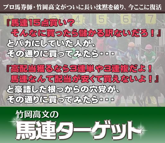 「TARGET frontier JV.」は、「馬連ターゲット」の実践だけでなく、データ解析などいろいろと役に立つので、まだ入会されていない方は、この機会に導入されてみてはいかがでしょうか。