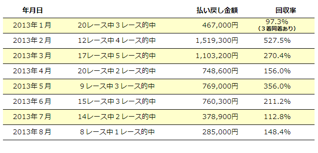 5レースに1回のペースで当たり、2倍以上の回収率を誇る中、万馬券も的中してしまう!