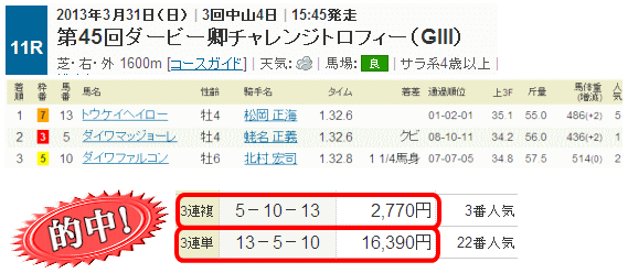 - 三連複をわずか4点で的中させる馬券購入テクニック