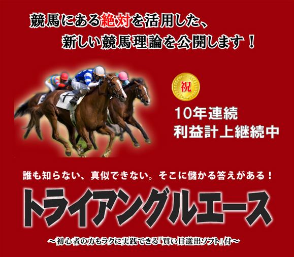 通常の購入者特典に加え、「トライアングルエース」をお買い上げの方に、販売元の佐野友哉氏より頂いた、タイミングをつかむだけで簡単に実践できる「裏目馬単購入法」(PDF11頁)もお渡ししています。