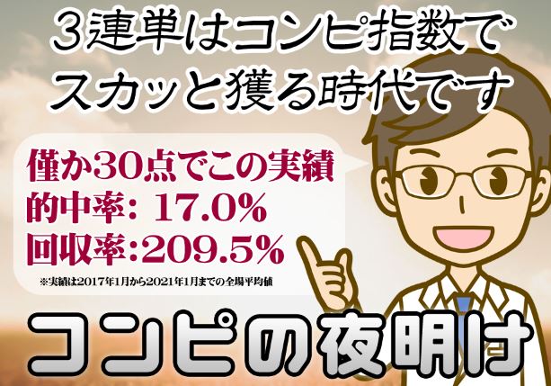 この『コンピの夜明け』では、2021年3月14日の金鯱賞で78万円馬券を的中させていますし、場合によっては100万円馬券も視野に入ってくるかもしれません。